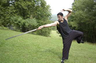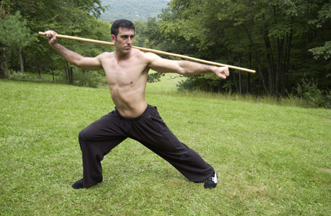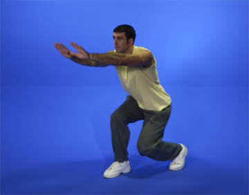 For basic gongfu training, many exercises are taught to relax and stretch the entire body. There is a special emphasis in this beginning stage on relaxing and stretching the shoulders, arms, back, legs, and waist. Extremely pliable shoulders and arms with a flexible waist are trademarks of an accomplished Tongbei practitioner. So as the result, Tongbei practitioners should have more relaxed shoulders, longer arms, and a more flexible waist. This method can let qi move freely and reach everywhere easily, and so internal power can be more powerful and flexible. Second, there are additional methods taught for increasing the generation of internal force for the arms, legs, waist, back, and for developing one's root or stability. Tongbei moves are very quick with flexible footwork but stability is a very important factor emphasized in training. Some skills that generate and release large amounts of force require tremendous stability. It is said "when you are still, you should stand as a giant mountain. Nobody can move you." Third, there are further exercises geared toward balancing one's internal components (shen, yi, qi). This method of training is especially emphasized in Shi style. This training is very arduous and tedious requiring consistent and dedicated practice. Most masters assign this to students for their first several years of training because they believe these are the foundation skills for all advanced studies. In addition, it gives the master a chance to observe a student's character and personality. If one fails to practice these skills diligently and persistently, he would not be taught any longer.